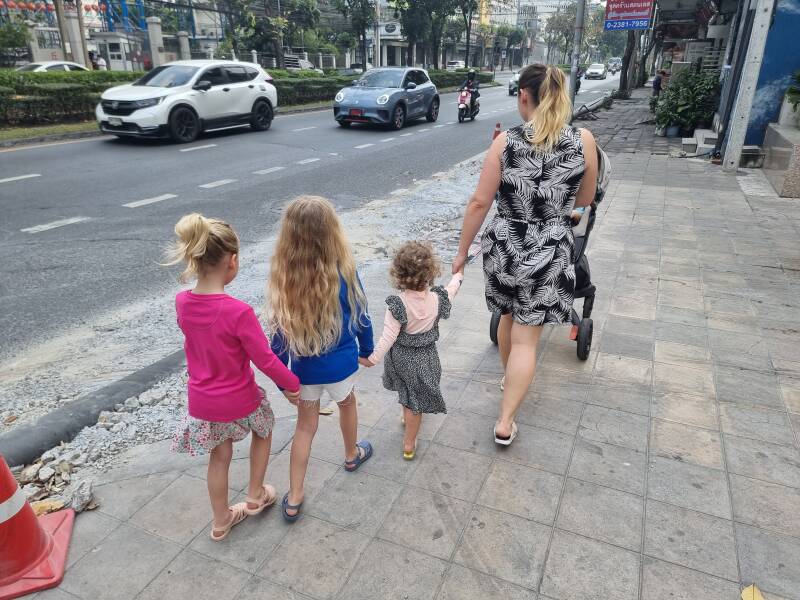 Crossing the road with a stroller in Bangkok is a completely different sport.